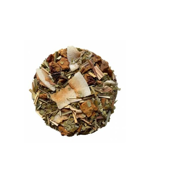 A fresh green tea flavor, vegetal with a warming ginger presence, excellent blend for any time of the year.